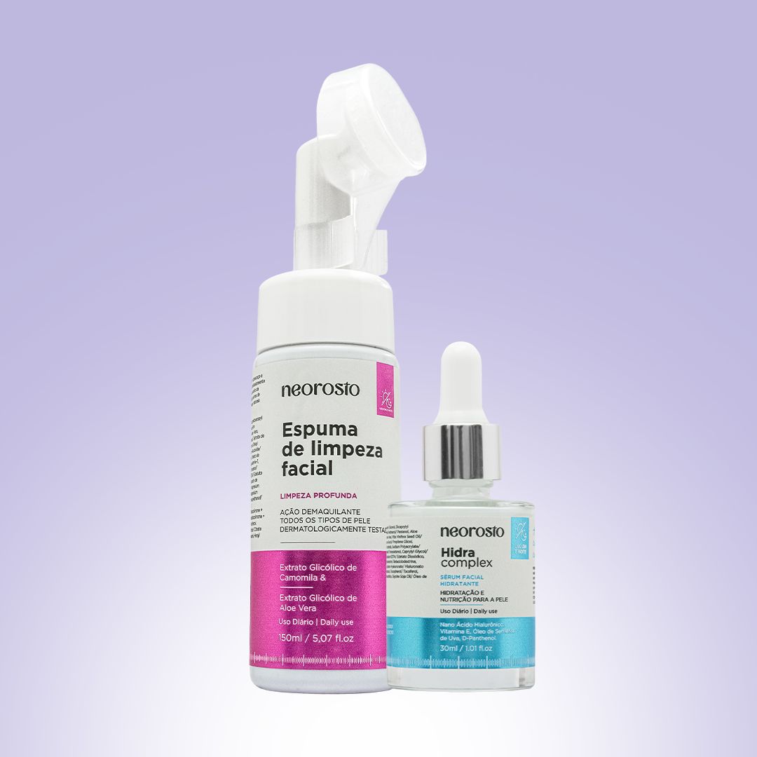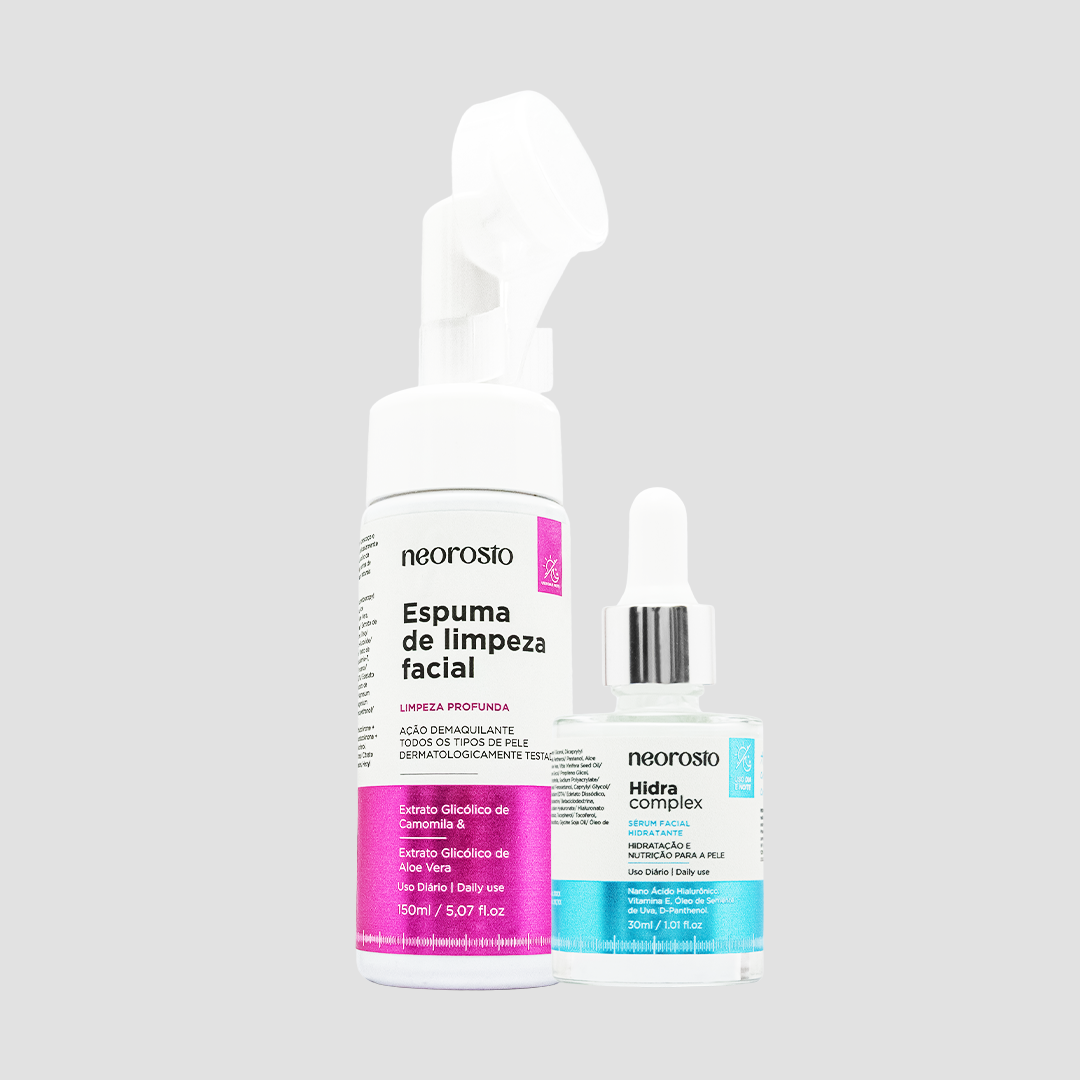 O Kit Espuma de Limpeza + Hidra Complex (Limpeza + Hidratação) vem com dois passos simples e poderosos: